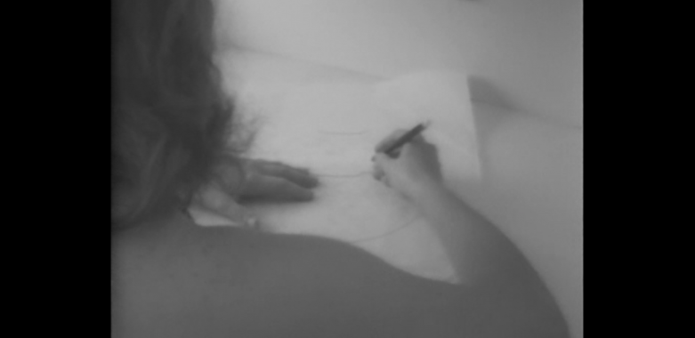 Ao som de “Meu caro amigo”, de Chico Buarque, a artista desenha a lápis o mapa-múndi.